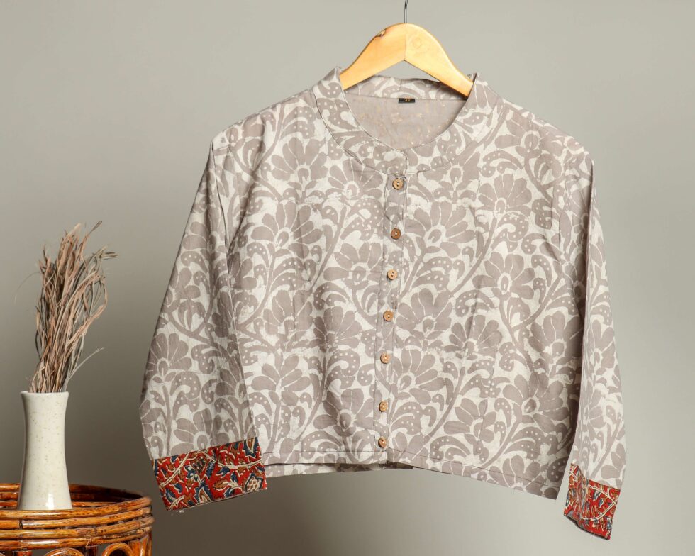 Handmade Block Print Cotton for Women ? Ethnic Floral Printed Top with Long Sleeves