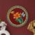 This hand-painted pichwai wall plate features Ganesha, the Hindu god of wisdom and prosperity. He is depicted with a flower on a blue plate, surrounded by flowers and a horse. The intricate details and vibrant colors make this a beautiful piece of art for any home.